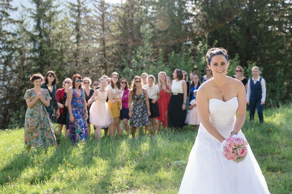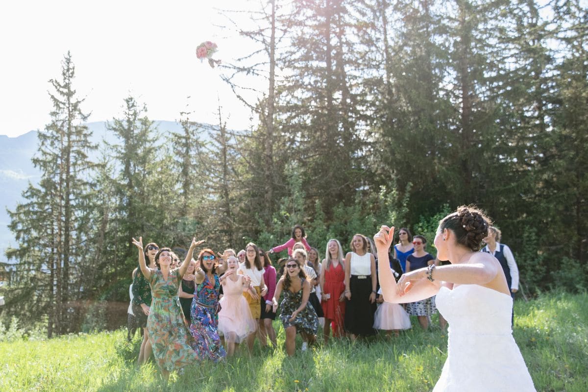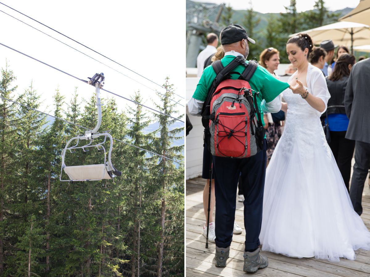 Et là, c’était le soulagement car le cocktail était prévu au restaurant d’altitude Le Monchu qui se situe au cœur des 3 Vallées. On y accède par les pistes de ski en hivers. En été, il vaut mieux troquer les talons aiguilles pour des chaussures de montagne. Tout le monde a apprécié la petite ballade et la vue dégagée sur les montagnes. Après le lancé de bouquet, nous sommes tous rentrés à Méribel-les Allues pour la soirée de mariage.